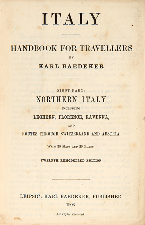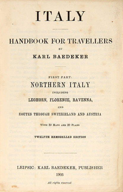 Twelfth edition. lxiv, 563 pp, 30 maps and 39 plans, some minor spotting on title-page and front map, pages slightly browned; publisher's red cloth gilt; overall a very good copy.
