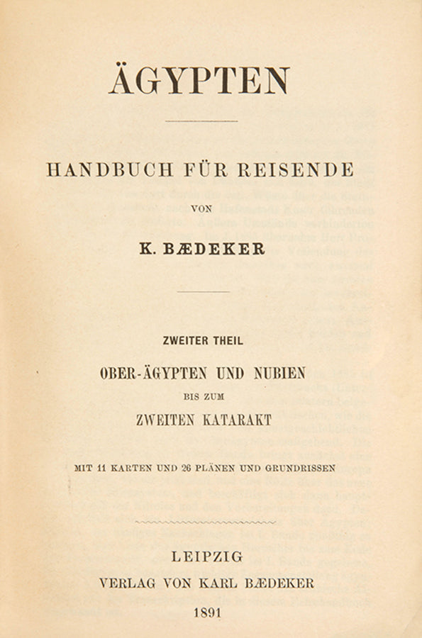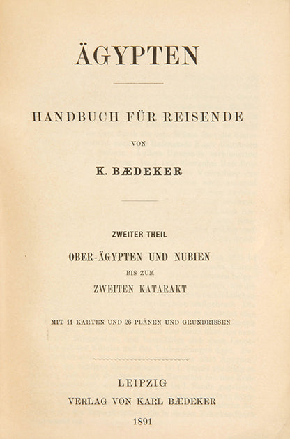This is the first and only German edition of 'Ober-Ägypten'. Previously only 'Unter-Ägypten' had been published. This edition covering Upper Egypt was published a year before the English edition of the same title in 1892 The next German edition on Egypt (1897) combined both Upper and Lower Egypt in one volume.