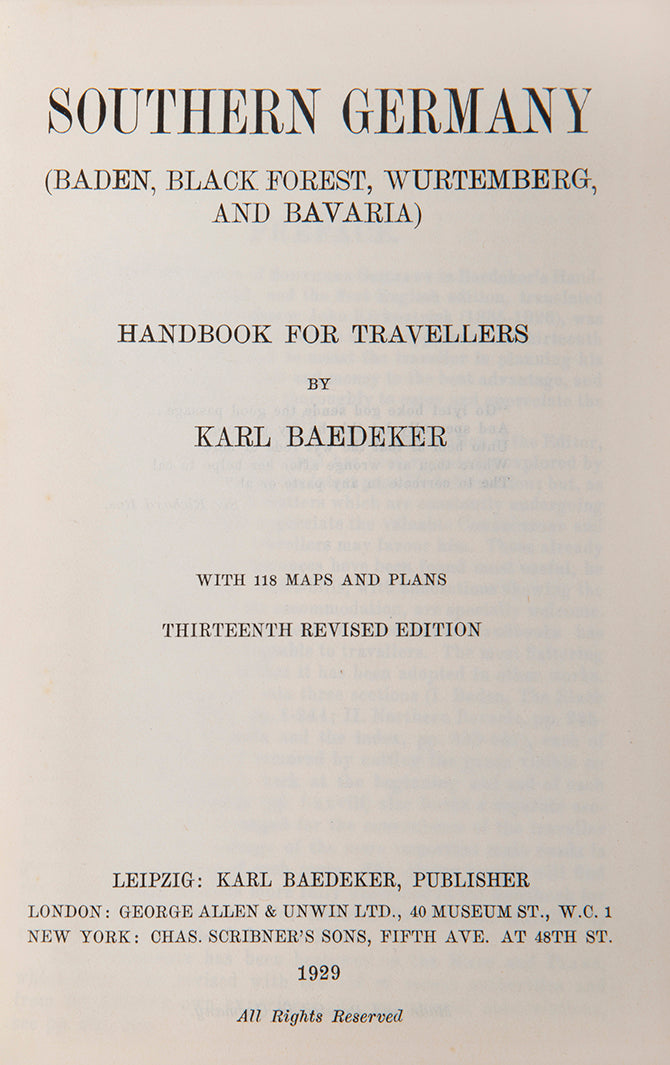 Thirteenth revised edition. pp. xxviii, 547, 43 maps, 75 plans, article on Germany from The Times tipped in; publisher's red cloth gilt, red pictorial dust jacket, spine slightly faded and worn at head and foot; an excellent copy.