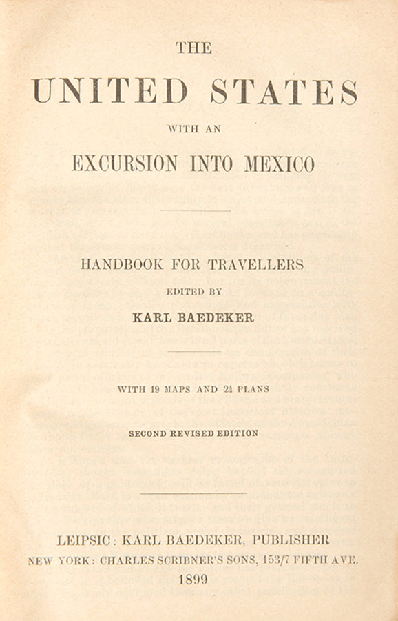 This title was first published in 1893 and was the first Baedeker originally written in English and written by J.F. Muirhead who later started his own series of guidebooks. In the introduction Baedeker acknowledges the help of Mr Henry Gannett, Chief Topographer of the United States Geological Survey. There were only four editions of this title published.