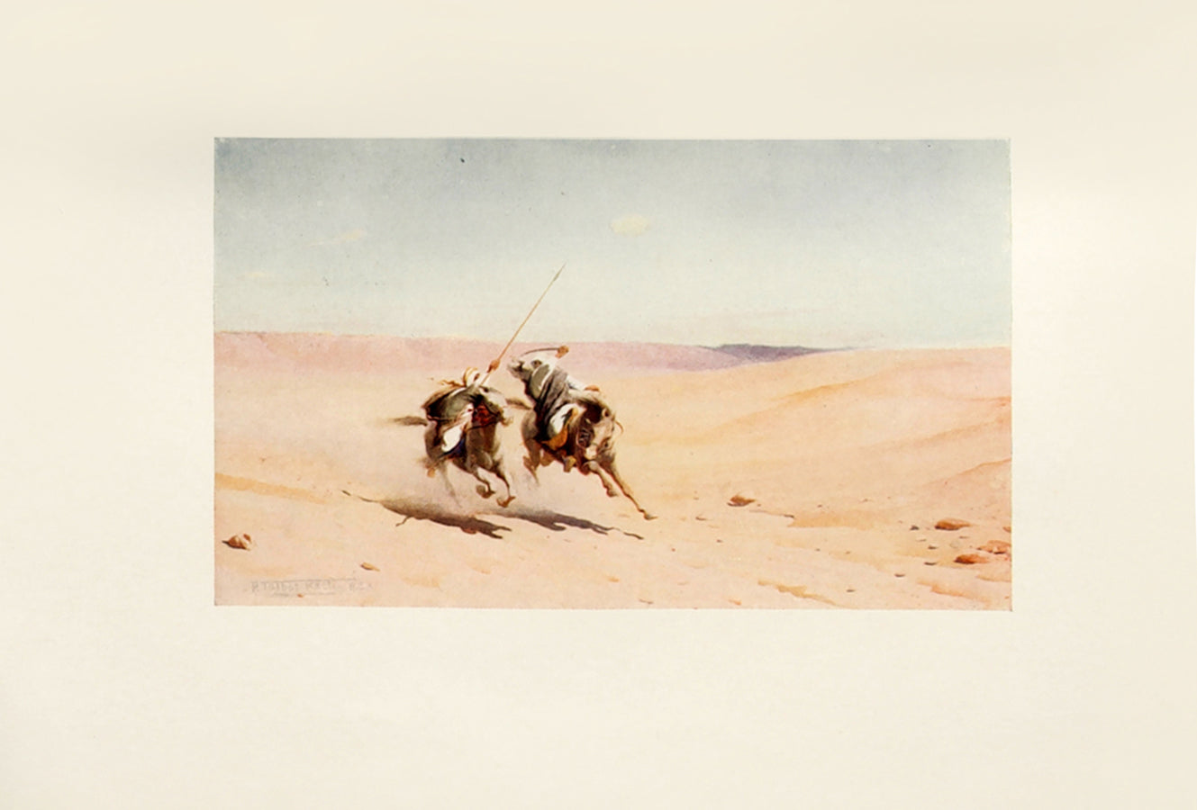 Robert George Talbot Kelly (1861–1934) was a professional painter who established a studio in Cairo in 1883 and stayed for 32 years. He spent a considerable time with the Bedouin tribes who he depicts in this work in a dedicated chapter "The Desert and the Bedawin", including a description of the rules of single combat in the desert.