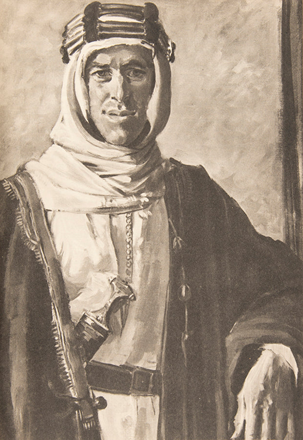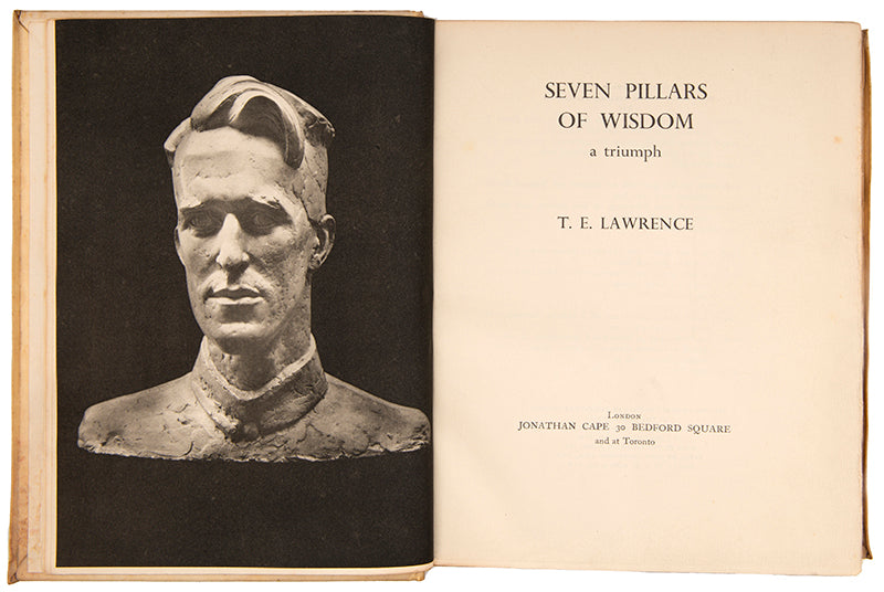 Following his extraordinary military and diplomatic career in Arabia, and having already become a legendary figure in the public imagination, T.E. Lawrence purchased his Dorset cottage retreat Clouds Hill in 1924 to write his book about the war. The first draft of Seven Pillars was completed by November 1919, but was soon lost, according to the author, at Reading Station. A second draft was finished during 1922, and finally appeared as a private edition, reflecting Lawrence's love of fine printing, in 1926.