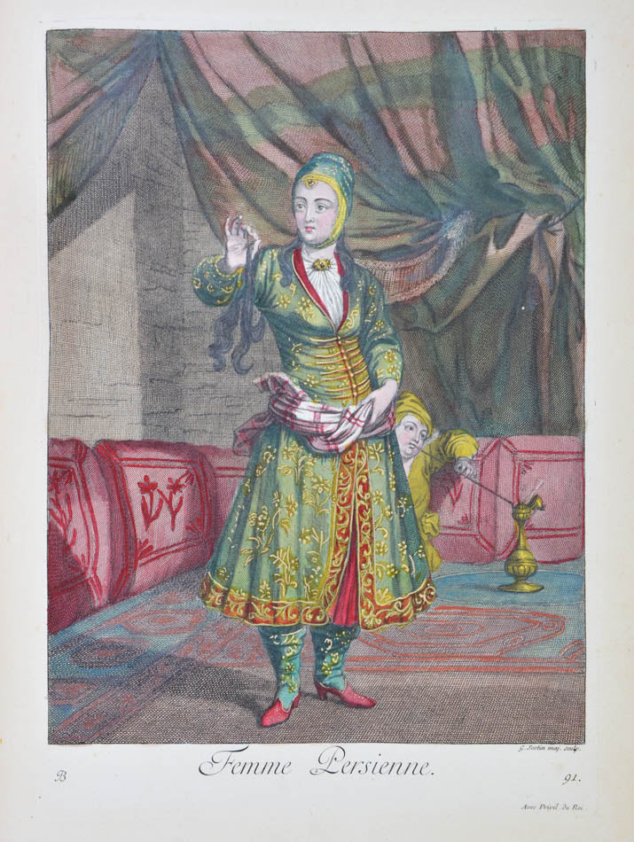 In addition to the sixty or so plates depicting Turkish Court, noble, military and other costume, the work illustrates the regional, religious or national costume of several other parts of the Turkish Empire. These include Greeks (10); Albanians (2); Jews (3); Hungarians (2); Wallachians (3); Bulgarians (2); Crimean Tartars (1); Armenians (5); Persians (2); Indians (2); Arabs (1); Barbary Coast (4); and Moors (1).