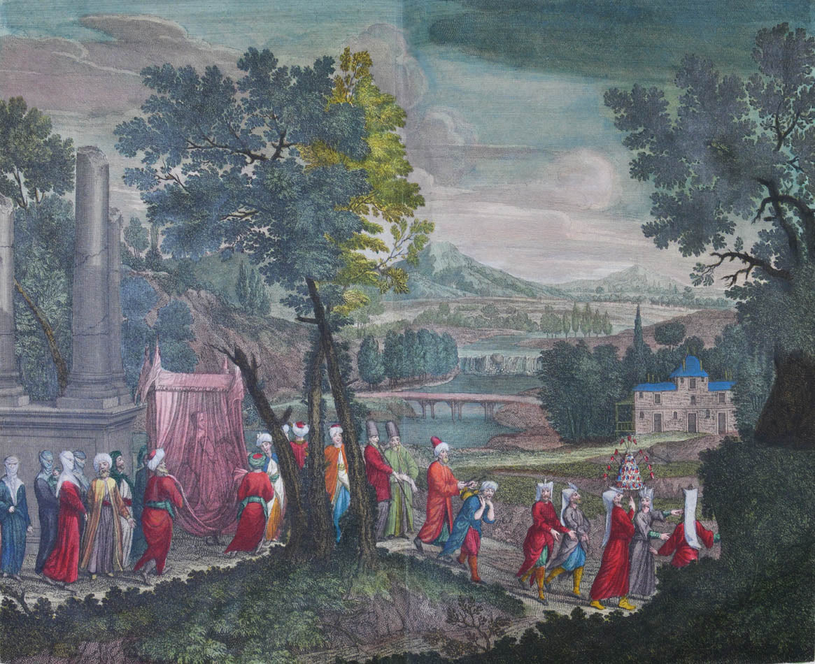 The plates for this work were commissioned by Charles de Ferriol (1652-1722), the French ambassador to the Porte between 1699 and 1709. The plates were engraved after drawings by the Flemish artist J.B. van Mour, who lived and worked in Constantinople for many years during the first part of the eighteenth century. It has been suggested that van Mour came to Constantinople with the entourage of Ferriol in 1699. When the paintings were complete, Ferriol helped Le Hay to publish the present prints of the pictures. Le Hay's work was an instant success and the plates quickly became the principal source of turqueries for artists and publishers throughout Europe. In recognition of van Mour's talents, he was granted the unique post of 'Peintre ordinaire du Roi en Levant' in 1725.