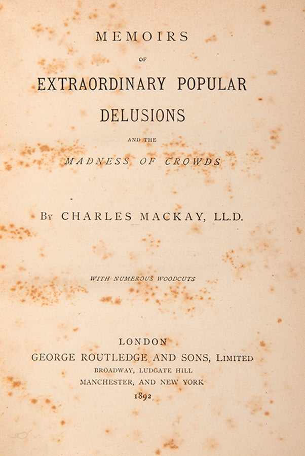 In the preface it is stated "The object of the Author in the following pages has been to collect the most remarkable instances of those moral epidemics which have been excited, sometimes by one cause and sometimes by another, and to show how easily the masses have been led astray, and how imitative and gregarious men are, even in their infatuations and crimes". The chapters on the financial fads, are still considered crucially important even today. The Financial Times rated it second among the top ten greatest books on investment ever published. Since its first publication in 1841 it has seldom been out of print. Bernard Baruch wrote a new forward in the 1932 edition, stating that it had saved him in 1929, getting him out shortly before the market crashed. Mackay could never have foreseen how his examination of mass hysteria in the various bubbles -- tulipomania, John Law, and the South Sea -- would take on a life of its own, and commence a new field of study, the behaviour of the crowd, which would later on be revisited by Le Bon, Freud, Trotter, and Canetti. In other chapters Mackay vividly describes crusades, fortune telling, slow poisoners, witch hunts and a variety of religious cults.
