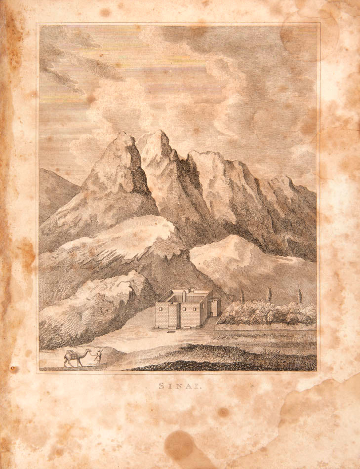 Small 4to (24.5 x 19.8 cm); 4 illustration plates (including frontispiece) and one folding map (with a tear, professionally repaired without loss) unnumbered, some occasional staining, contemporary morocco, neatly rebacked, gilt borders, marbled endpapers, corners rubbed; ownership dedication and signature in brown ink to front endpaper, dated '20 Mars 1823'. Text in Hebrew and Judeo-Spanish. [5], 19 ll.