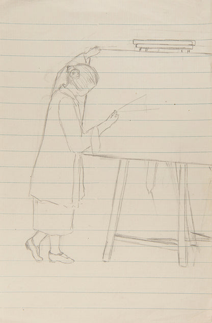 A wonderful group of artworks by the pioneering Oxford chemist Muriel Tomlinson (1909-1991), a number documenting her education during the 1920s. It includes fifteen pencil drawings of women at work in the chemistry laboratory, teaching, or sitting finals, and three drawings which depict the laboratories in detail. Together with other artwork by Tomlinson from the 1920s and 30s, including drawings, watercolours, and linocuts.
