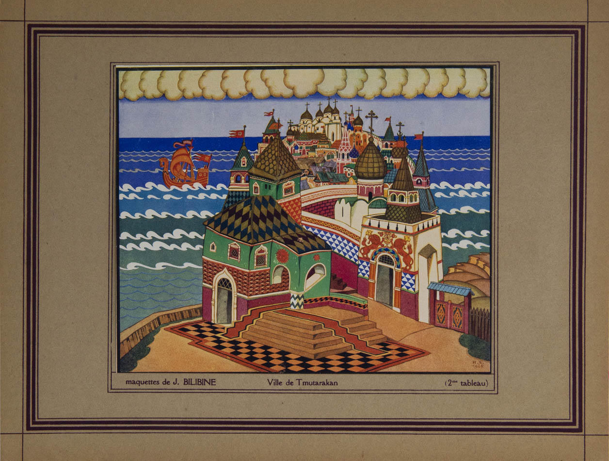 Folio (31.5 x 24.5 cm); illustrated throughout with 8 tipped in colour plates after Bilibin; original publisher's wrappers with Bilibin's design, a near-fine copy.