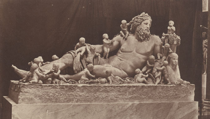 A nineteenth-century albumen print of the statue of the Nile God, discovered in 1513 in Campo Marzio and displayed thereafter in the Vatican Museums.
