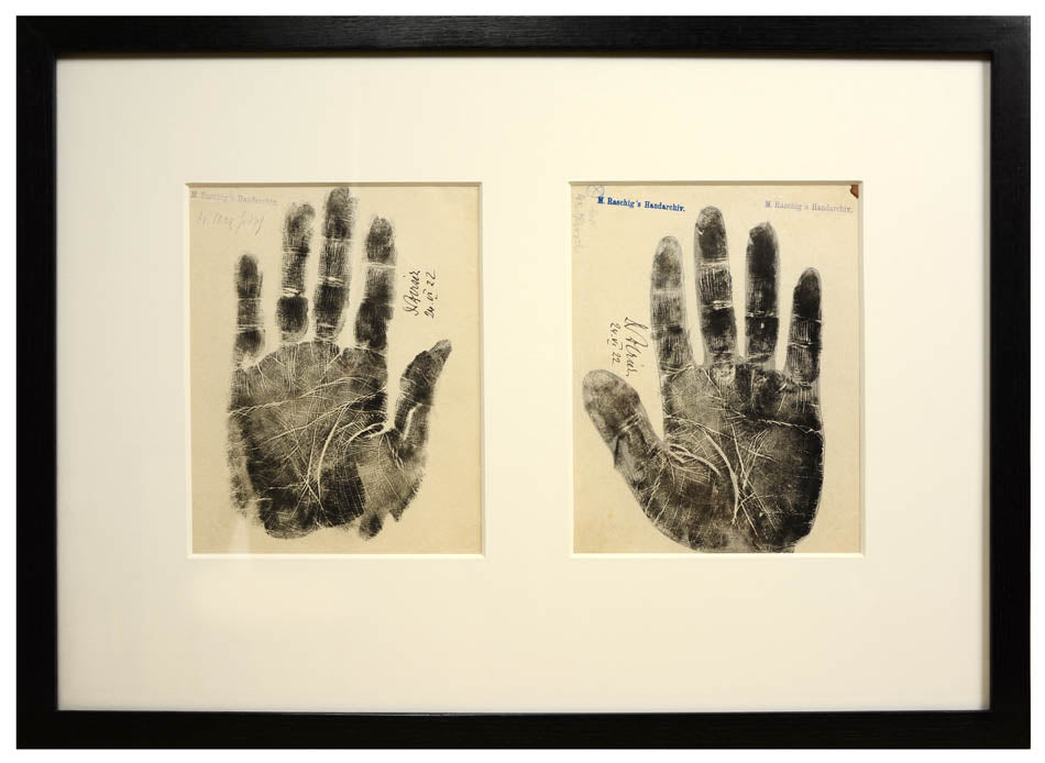 Raschig collected the hand prints between the 1870s and 1930s for a study into what the lines and shapes of hands could reveal about a person's character.