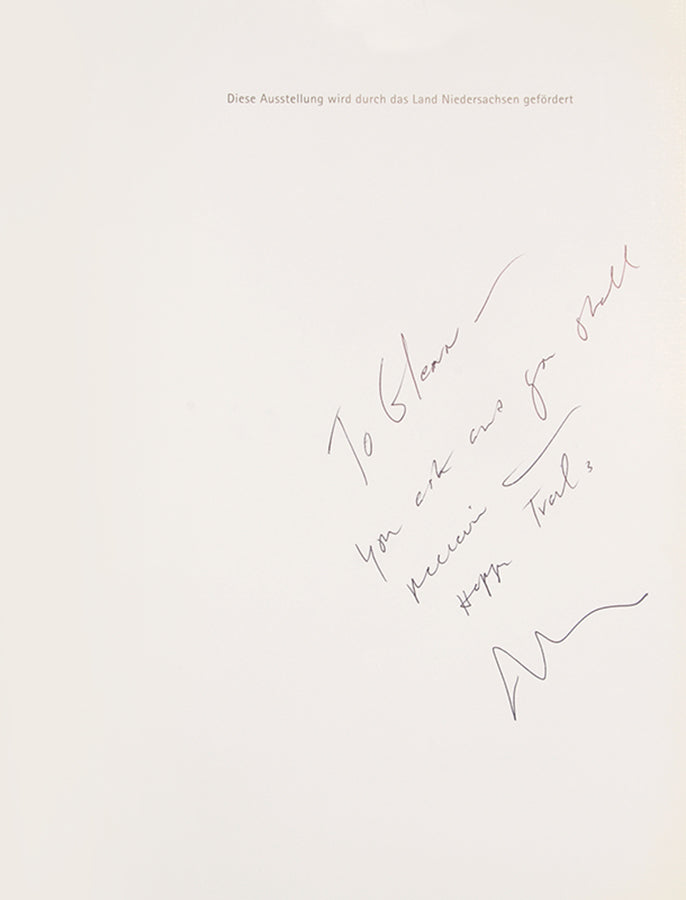 First edition, inscribed in pen on first page; 4to (269 x 217 mm, 10½ x 8½ in); illustrated with colour and black & white photographs, with texts by Boris Groys, Carl Haenlein, and Noemi Smolik in German and English; blue endpapers, white photo-illustrated paper-covered boards, titles in black, minor bumps to foot of spine and bottom edge, near-fine in a custom cloth chemise and slipcase; 120pp.