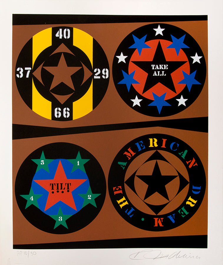 The American Dream represents the completion of the cycle that launched Indiana's career, following EAT, Love and Numbers. These works display Indiana's appropriation of advertising to create a new art in the 1960s, using single but powerfully symbolic words. Notable images included are: The American Dream, Love, Marilyn Monroe/Norma Jean Mortenson, Twenty-five: Highball, Redball Manifest, One Indiana Square and Picasso.