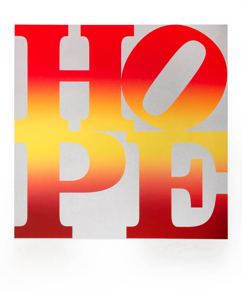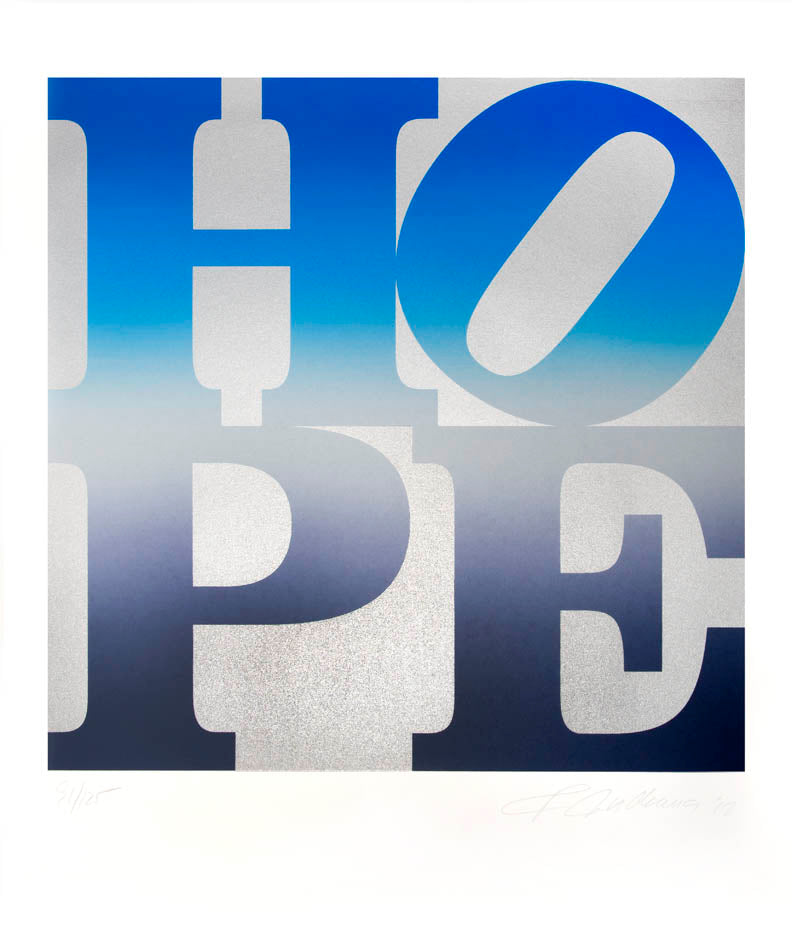 Today, Indiana's 'HOPE' is perhaps most closely associated with Barack Obama's 2008 Presidential campaign. At the time, all proceeds raised from the sale of this work went towards Obama's campaign. This was an overt display of his support for the Democrat and his faith in the positive potential of Obama's candidacy. Indiana always held the belief that his art should work to promote positive political and social change: 'I wanted to help name and empower the next generation and I felt that HOPE encompassed the needs of our time.' — Robert Indiana.