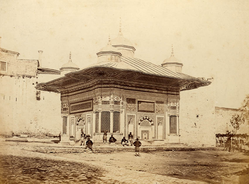 Albumen print. Fair tonal range and in good condition, pasted to original card, photographer's credit in negative.