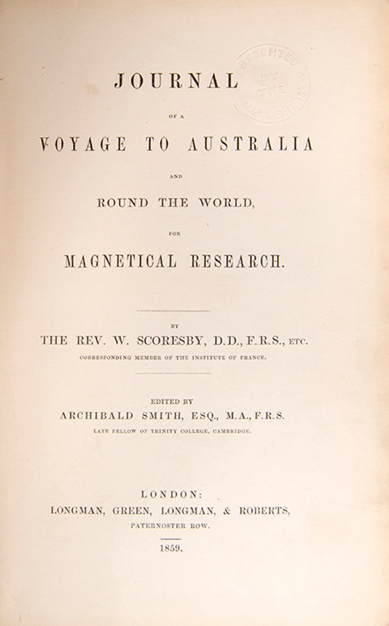 William Scoresby junior, the great Arctic explorer, was actively engaged on scientific research into magnetism and published several papers on the subject. To further his knowledge he made a voyage to Australia on board the iron-hulled Royal Charter in 1856 to study terrestrial magnetism. His account of the voyage and his researches was published posthumously, and was seen through the press by Archibald Smith.