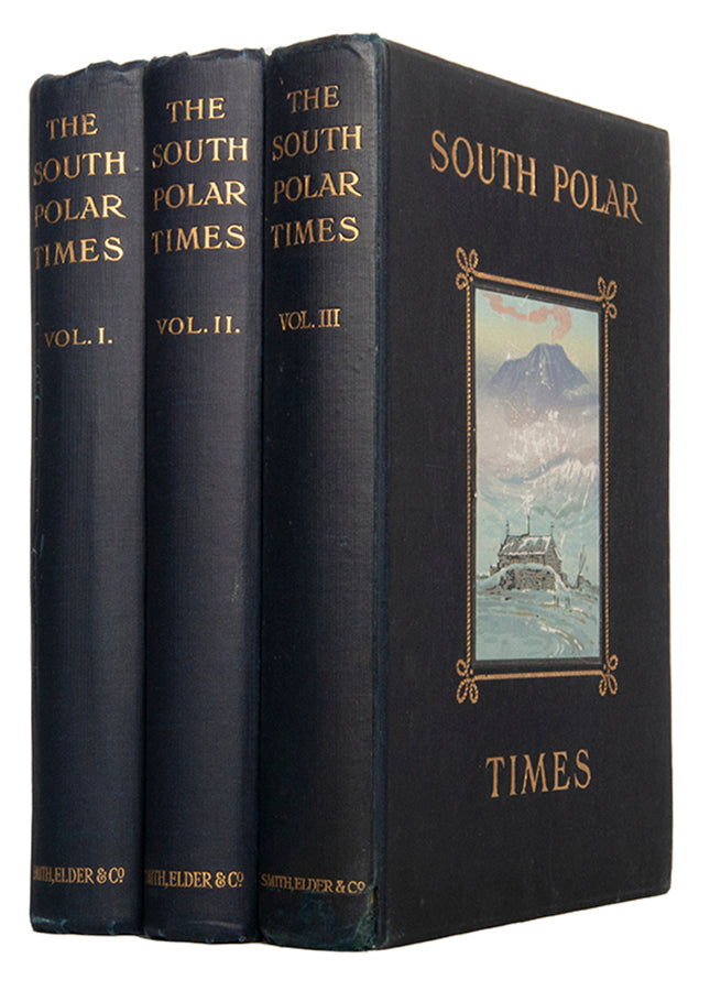 'It has always seemed churlish to list this title under Shackleton, who only edited the first of the three volumes, for the publication arose during Scott's two expeditions. On the first of these, Shackleton was invalided home before its completion, while he was most decidedly not a member of the second Scott effort. Still, this should not detract from the publication, a lithographed facsimile of typescripts produced by members of Scott's party during three bleak Antarctic winters spent in his company' (Taurus).