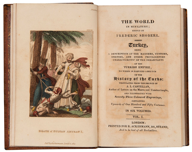 An attractive copy of Shoberl's work describing the costume and manners of the peoples living in Turkish Empire. The text is a translation of Castellan's Moeurs, Usages, Costumes des Othomans, published in Paris in 1812. The plates are derived from Dalvimart. This English edition, edited by Shoberl, contains an extra plate.