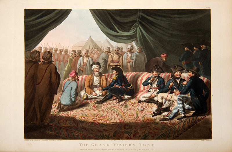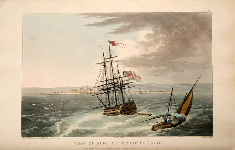 First edition; folio (46.5 x 33 cm); mezzotint portrait of Sir William Sidney Smith, 19 hand-coloured lithograph plates after Spilsbury, bottom margin of mezzotint frayed and repaired, otherwise clean and fresh internally; 19th-century half green morocco, marbled boards, gilt flat spine with gilt red morocco lettering piece, corners a little bumped, a very good copy; [4], iv, 42, [1]pp.
