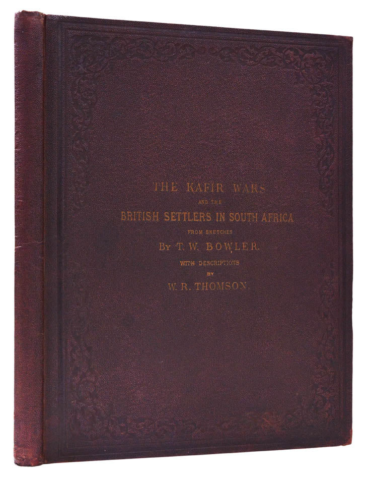 Gift from Bowler's children. An attractive book by the 'David Roberts of South Africa'. Inspired by his friend, the writer and fellow artist, Thomas Baines, Bowler embarked on the Waldensian in December 1861 for his tour of the eastern frontier districts, returning at the end of January 1862 with numerous drawings which formed the basis of this book. The views are reproduced in treble tinted lithography and show localities that achieved fame during the eastern frontier struggles. In his introduction the artist expresses the hope that his work 'if not found very useful in the library among more exhausting books of travel... will be thought ornamental in the drawing room.' The work is considered to be amongst Bowler's finest, particularly the views of Port Elizabeth and its harbour.