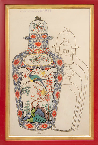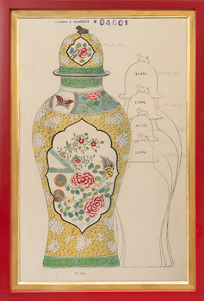 Group of three original watercolour designs on paper, with marginal stamps "Planche d'aquarelle" with numbers to each plate.
