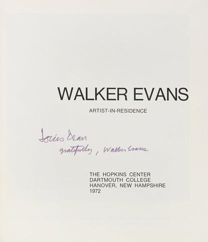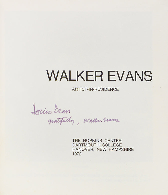 presentation copy, inscribed: 'Louis Dean gratefully, Walker Evans'.