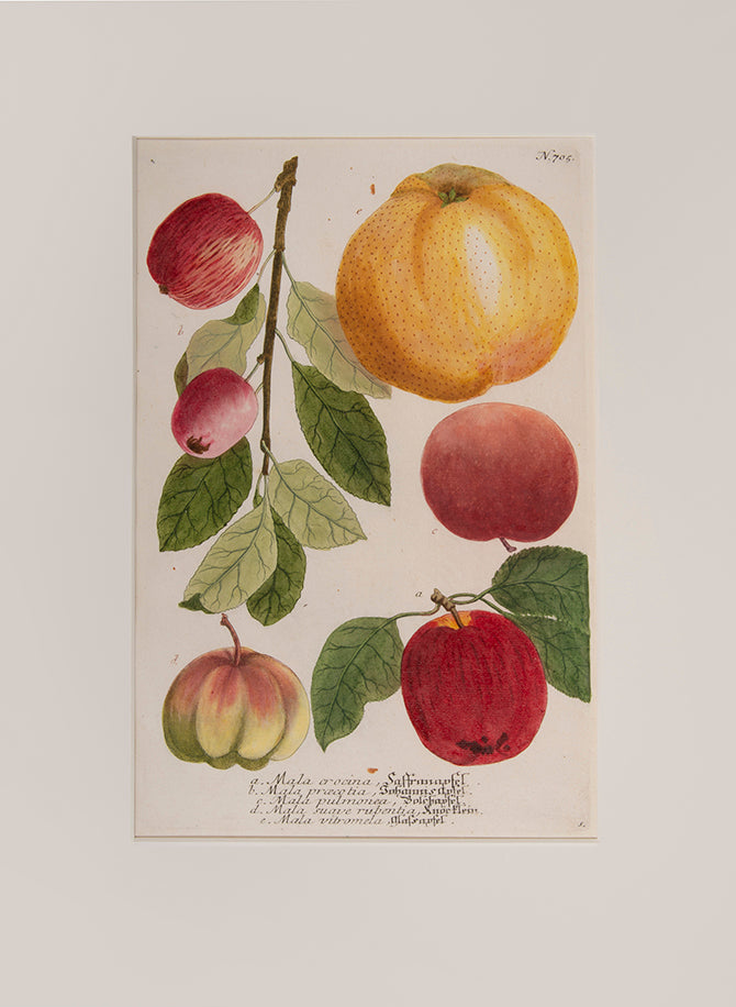 Johann Weinmann (1683-1741) was a Regensburg apothecary who organized the publication of Phytanthoza Iconographia, a huge florilegum which was not only very beautiful but which also influenced the publication of similar works worldwide. "The mezzotint process used here had been invented by Johann Teyler in the Netherlands around 1688. As practiced here by Bartholomaus Seuter (1678-1754) and Johann Elias Ridinger (1698-1767), it was really a combination of etching and mezzotint, which made possible delicate lines and a very fine grain. The addition of hand-tinting brought about unusual and subtle effects" (Hunt).