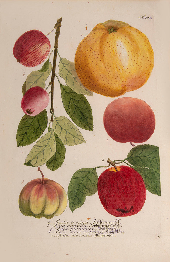 This was the first botanical series to use color-printed mezzotint successfully. Although he was never acknowledged, nearly half the drawings of this series are by Georg Dionysius Ehret and represent his first published botanical illustrations. Engraved by Bartholomäus Seuter, Johann Ridinger and Johann J. Haid. A most complete, interesting and valuable record of the plants cultivated early in the 18th century.
