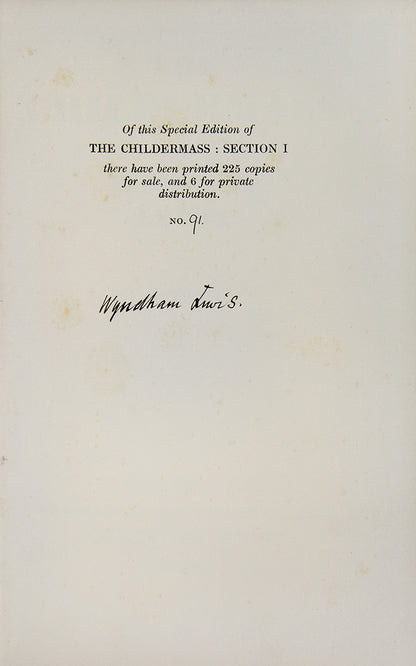 First edition, first impression, 'Special Edition', number 91 of 225 copies signed by the author; 8vo; publisher's yellow buckram, top edge gilt, others uncut, minor browning to endpapers as usual, spine gently rolled and a little faded. A very nice copy.