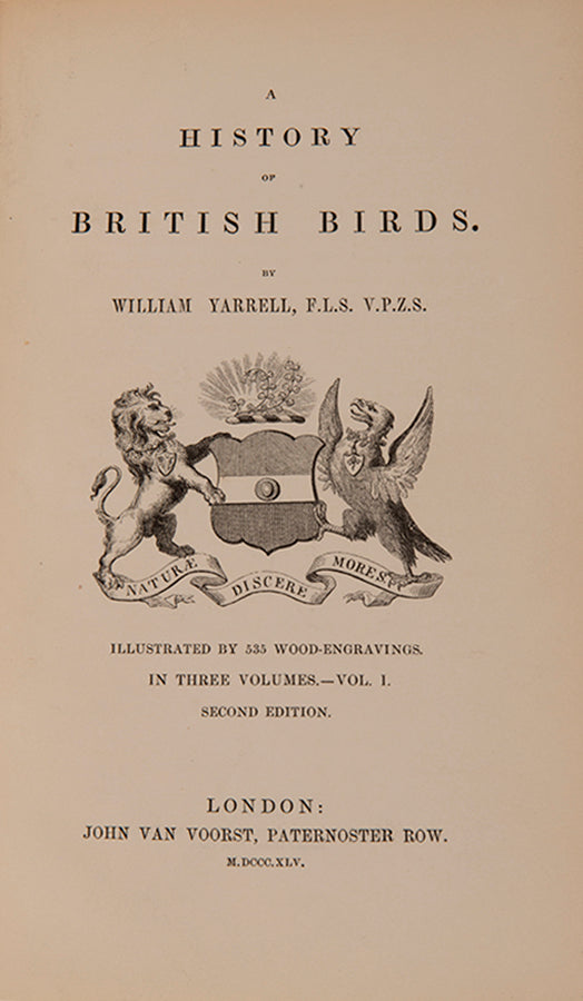 A finely bound set of Yarrell's classic works on the birds and fish of Great Britain. Yarrell (1784 – 1856) was a noted English zoologist and one of the original members of the Zoological Society. Yarrell took over his father's bookshop and newsagent but spent his spare time becoming a proficient shooter, angler and collector of specimens. He joined the Royal Institution in 1817, and having published his first zoological work, On the Occurrence of some Rare British Birds, was elected a fellow of the Linnean Society of London in 1825.