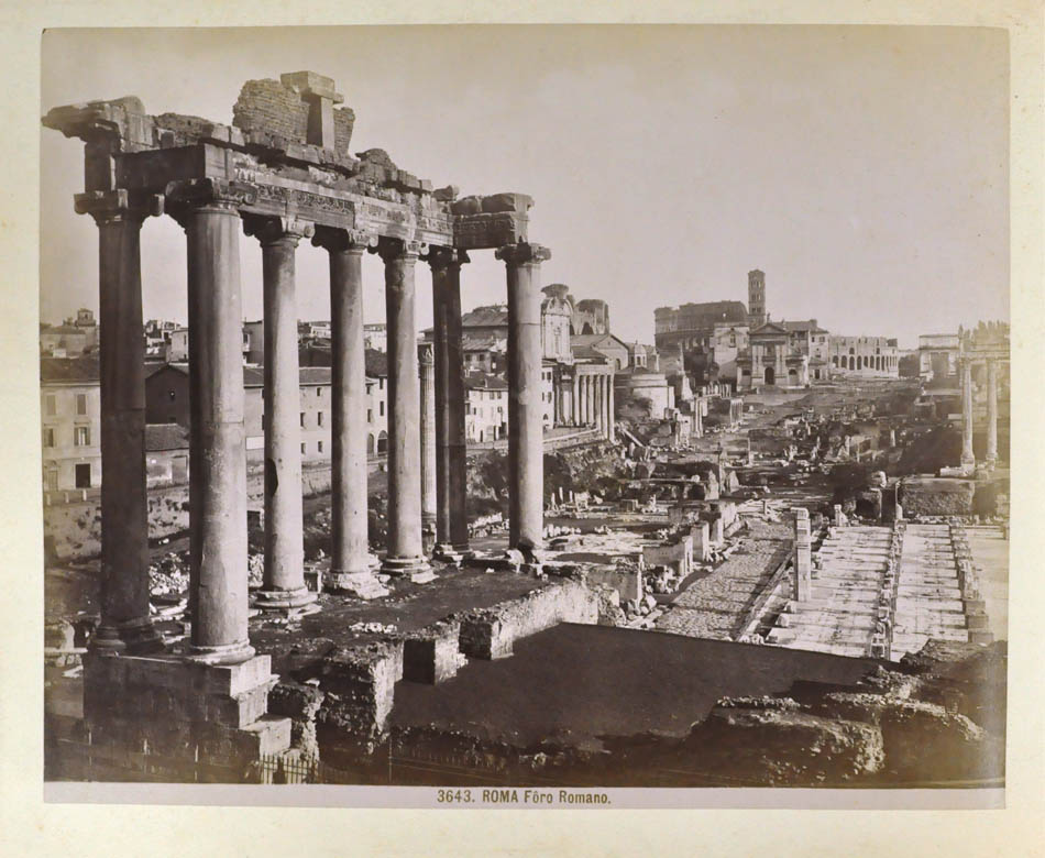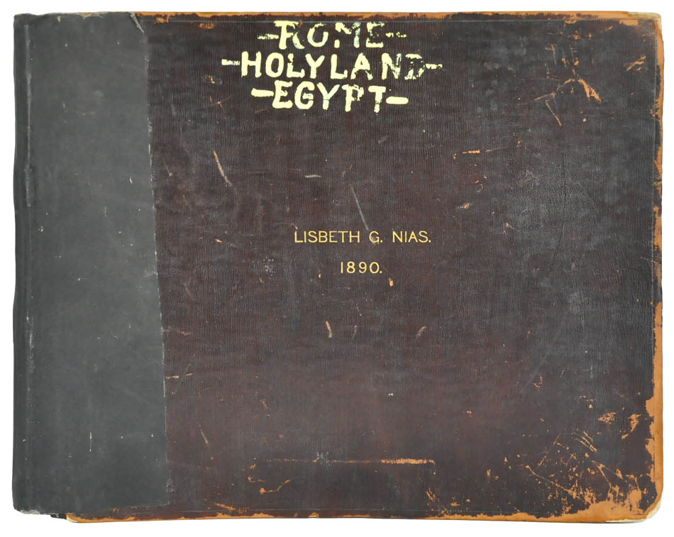 Oblong folio (27 x 33 cm). 71 albumen prints, including 11 of Italy, 28 of Egypt, 20 of Holy Land (most 21 x 26 cm); 4 leaves loose. Contemporary cloth over brown boards; worn.