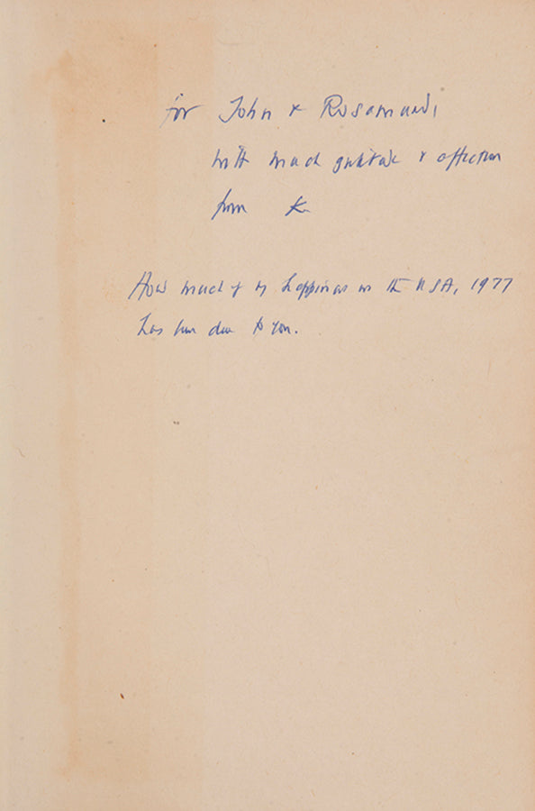 First US edition, first printing. PRESENTATION COPY INSCRIBED BY THE AUTHOR. 8vo; publisher's brown cloth, titles to spine gilt. With the dust jacket. Minor spotting to the fore edge, heavier at top edge, endpapers a little browned and with a small stain at rear, boards a little mottled. A decent copy in the mildly sunned dust jacket.