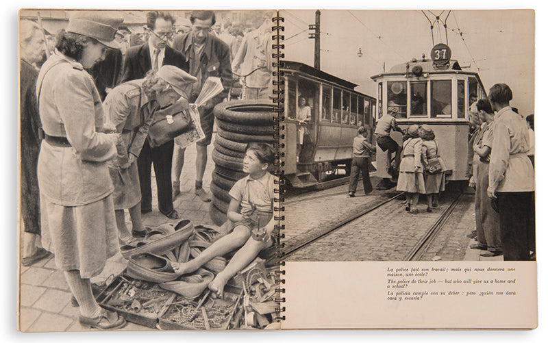 First edition; 8vo (224 x 182 mm, 8¾ x 7¼ in); black-and-white photographs printed in gravure, introduction in English, captions in French, English, and Spanish, light toning, occasional tears to tabs; photo-illustrated wire spiral-bound card covers, printed in yellow, wear to edges with small loss at head and foot, handling creases, a very good copy, scarce; 60pp.