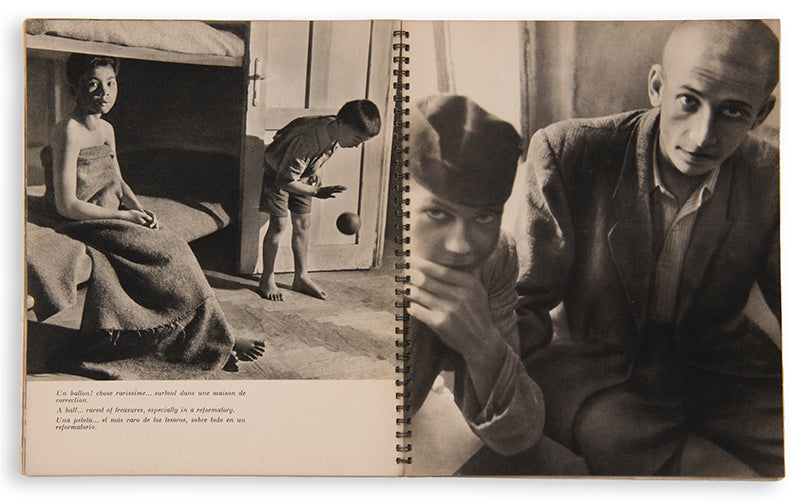 Chim spent over six months working on the commission, travelling to Austria, Greece, Germany, Hungary, Italy, and Poland. A selection from this series was published in LIFE in December 1948, with the present book published the following year. Children of Europe was issued in English, French, and Spanish editions and was influential in building sympathy in America for the Marshall Plan to rebuild Europe. The introduction, 'Letter to a grown up,' and captions are written from the perspective of a young narrator speaking on behalf of these children. It ends with a brief paragraph: 'Share your world with us. We too shall be grown-up people in a few years. Do not abandon us a second time and make us lose forever our faith in the ideals for which you fought'.
