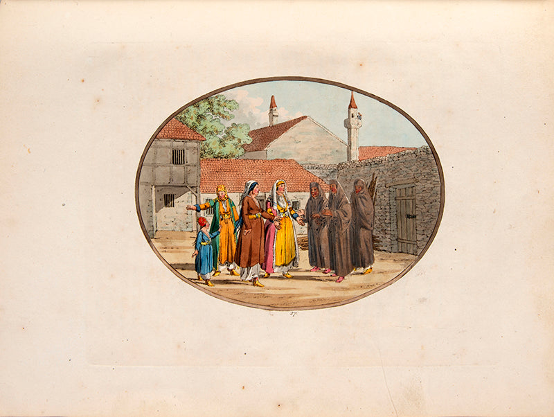 First edition, 4 parts in one vol., 4to, text in French and German; x, 28, [4], [29]-64, [6], [65]-100, [6], [101]-142 pp, with 40 oval aquatint plates in contemporary hand colour; occasional spotting, some light water-staining, a few plates with sky oxidised, contemporary