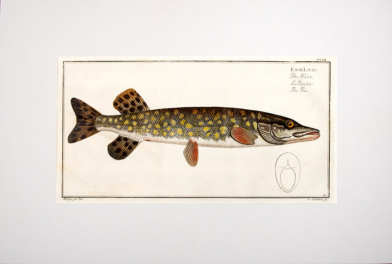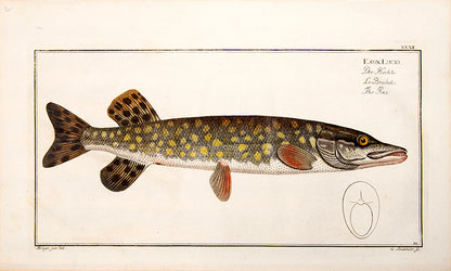 Plate XXXII. Esox Lucio. Der Hecht. Le Brochet. The Pike.