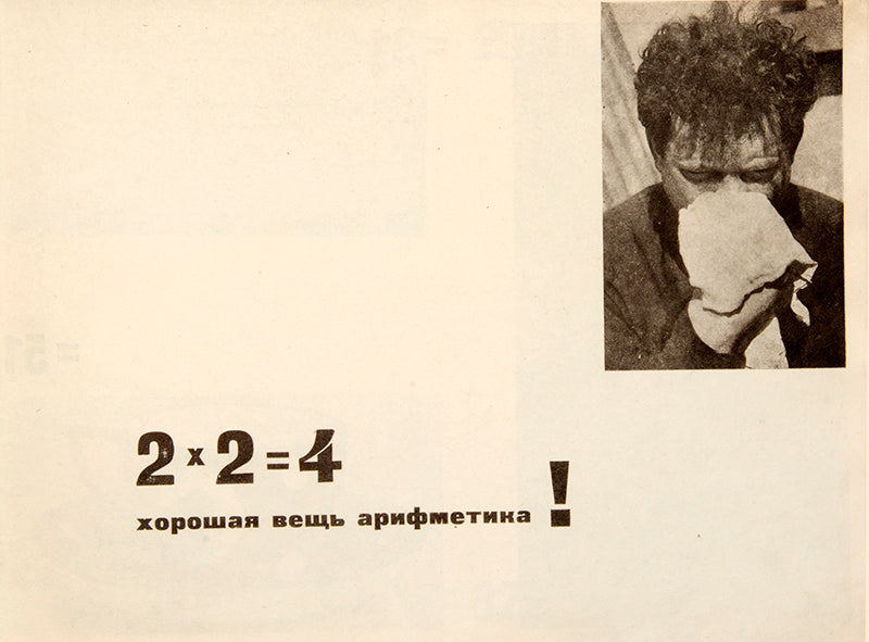 The only text to accompany the maths is '2 x 2 = 4 khoroshaia veshch arifmetika !' which is surely a reference to Dostoevsky's Notes from Underground when the narrator says that two times two equals four is a very fine thing.