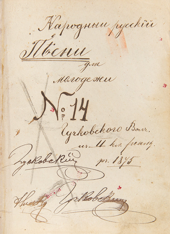 A very scarce collection of 129 folk songs specifically for young people. The collection reflects the language spoken in Western Galicia and the songs are very much Ukrainian in their focus. The owner has crossed out the extra 's' in the title to affirm that it is Rusyn as opposed to Russian. Rare: not found in WorldCat.