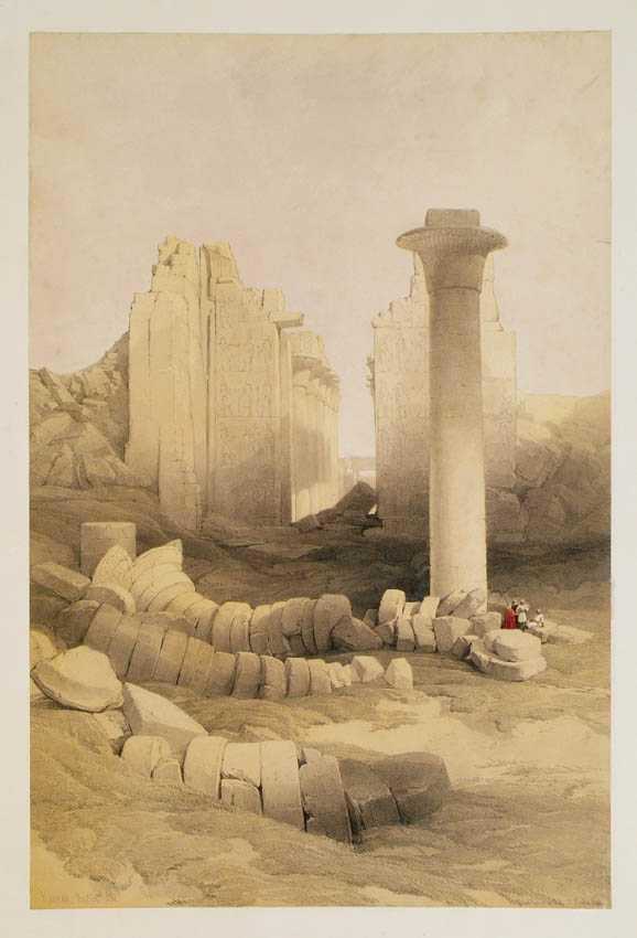 Original hand-coloured lithograph on fine paper mounted on card as issued from the subscription edition of Roberts' 'Egypt'. Some damage to the image.