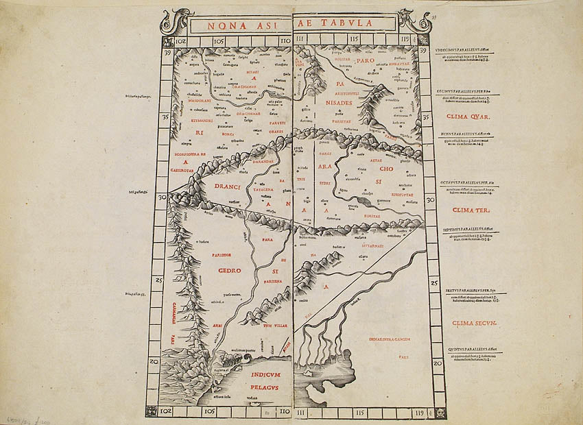 From Bernardus Sylvanus's 'Claudii Ptholemaei Alexandrini liber Geographicae...', published in Venice in 1511. 'The editor - according to his apologia in the introduction - deliberately decided to amend the construction of Ptolemy's maps to take account of modern discoveries. This bold step, needless to say, met with only partial success principally because Sylvanus relied on already out-dated information, or felt unable to depart radically from long-standing geographical conceptions.