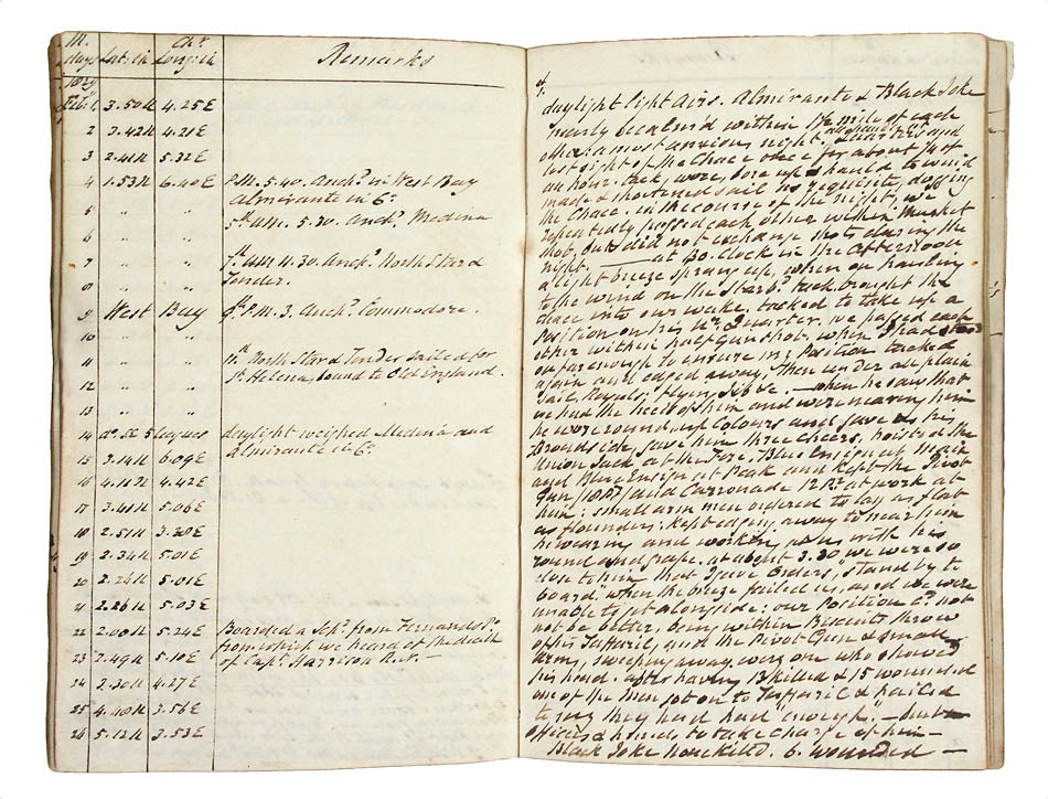 1. Daily entires: through 1829 record the capture of various ships, with other remarks, for example: