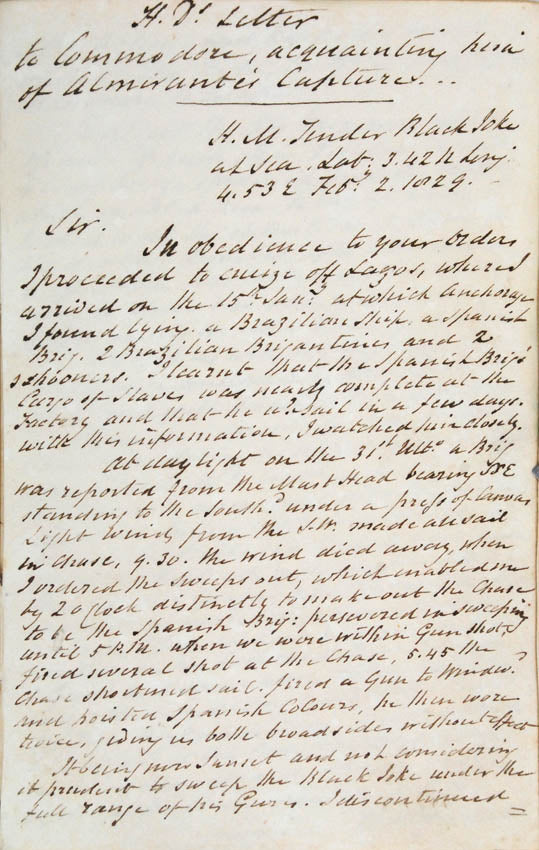 7. HD's Letter to Commodore Acquainting him with the Almirante's Capture. (Downe's transcription).