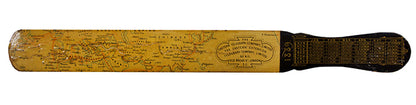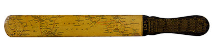 Letter opener with printed world map on both sides, 1889 calendar printed on handle.