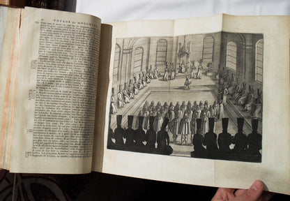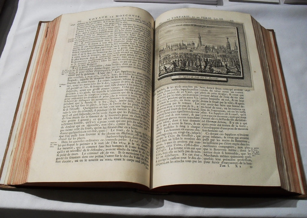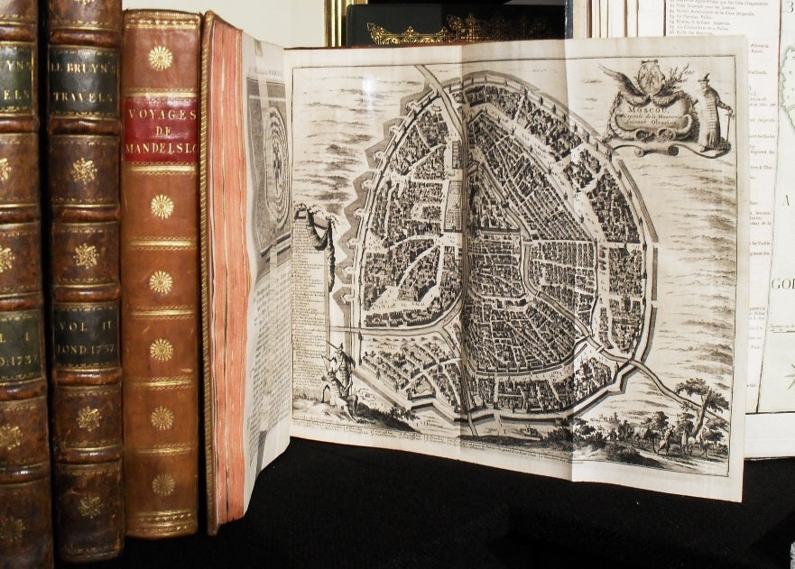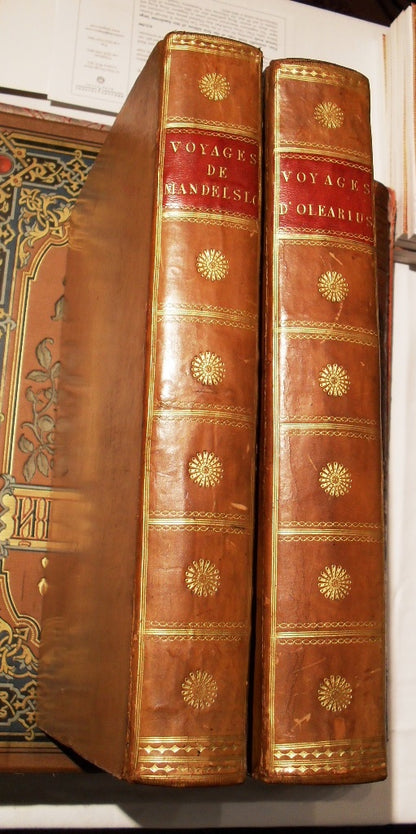 Richly illustrated edition. A fine set, attractively bound in polished calf, of this richly illustrated edition of the important accounts of Olearius and Mandelslo, edited by Van der Aa.