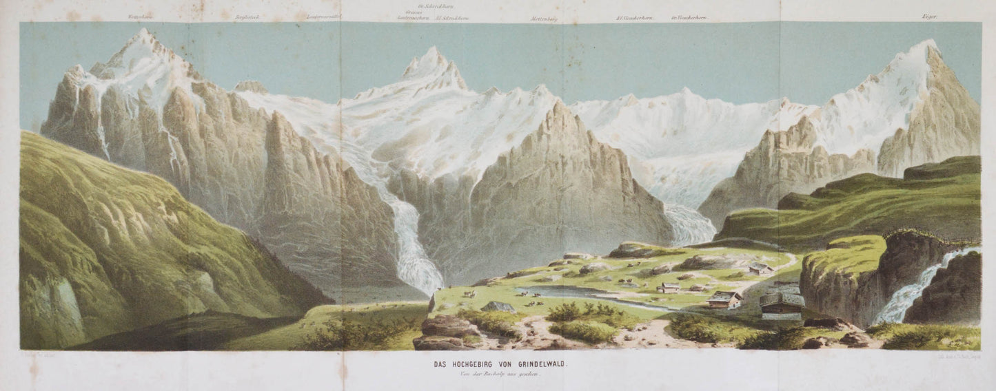 First edition. Large 8vo (24 x 17 cm). lxv, 150 pp, one hand-coloured lithographed panorama, one folding coloured map, 3 tinted lithographed plates, small ownership stamp on endpapers, some foxing inside; bound in black morocco, slightly worn; a good copy.