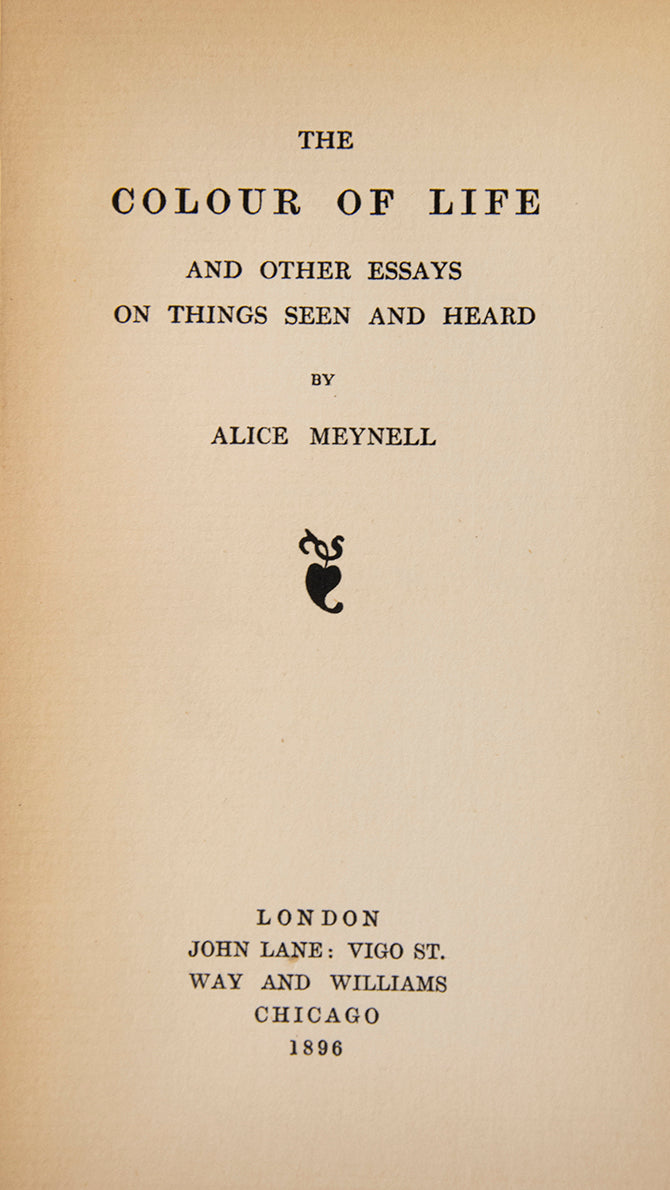Synesthesic ponderings by Aesthetic critic Alice Meynell: 'Red is the colour of violence, or of life broken open, edited, and published.'
