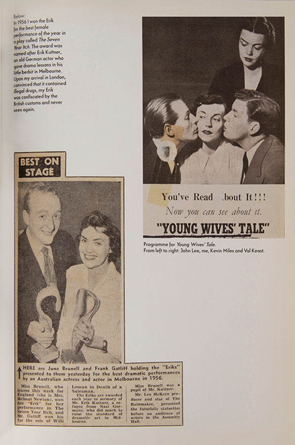 June and Helmut Newton were married for over fifty years. This autobiographical book gives an overview of her childhood in Australia, her career as an actress, and then as a photographer using the professional name Alice Springs. It ends with a postscript explaining Helmut's death at the Château Marmont on 23 January 2004, with a brief sequence of photographs made by June at this time.