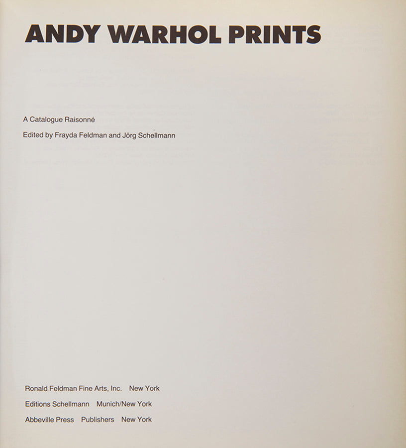 WARHOL, Andy; FELDMAN, Frayda & SCHELLMANN, Jorg (editors).