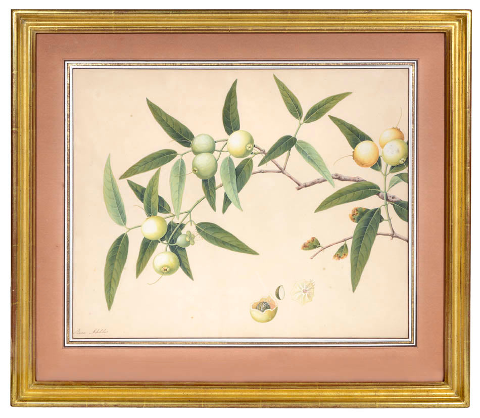 A pair of watercolours on wove paper watermarked 1810, each image showing fruit on a branch and a cross-section of the fruit, framed and glazed, each c.53 x 60 cm. (22 7/8 x 23 5/8 in) overall.
