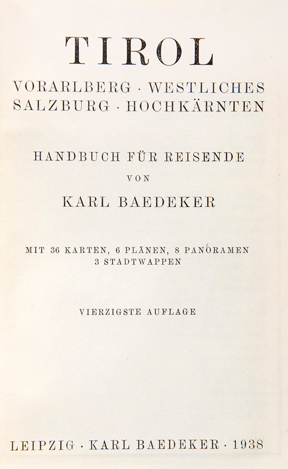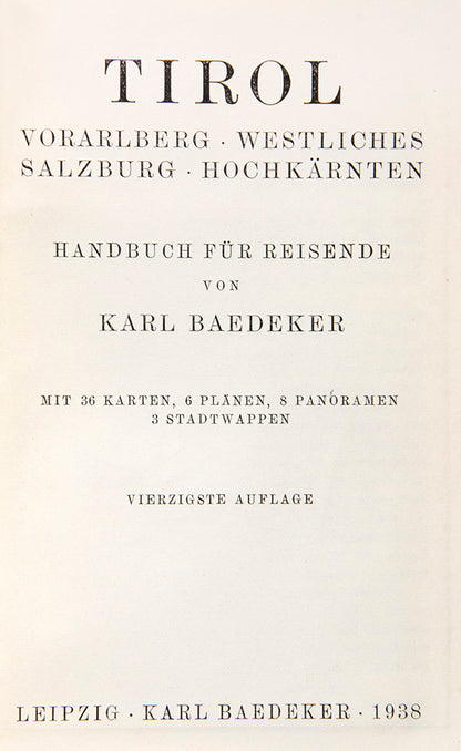 Fortieth edition. lvi, 348pp 36 maps, 6 plans, 8 panoramas, 3 coats of arms; publisher's red variant coarse-grained binding; an excellent copy.