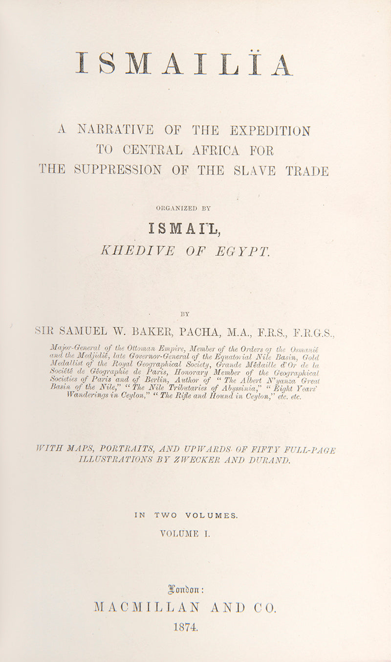 In 1869, Baker, one of the greatest explorers of Africa, was appointed by the Khedive Isma'il to a four-year term as governor-general of the equatorial Nile basin, with the rank of pasha and major-general in the Ottoman army. It was the most senior post a European ever received under an Egyptian administration. According to the khedive's firman, Baker's duties included annexing the equatorial Nile basin, establishing Egyptian authority over the region south of Gondokoro, suppressing the slave trade, introducing cotton cultivation, organizing a network of trading stations throughout the annexed territories, and opening the great lakes near the equator to navigation. The expedition produced mixed results. Although he had suppressed the slave trade in some areas and had extended the khedive's authority to Gondokoro and Fatick, he had failed to pacify the lawless region between these two places. Moreover, he was unable to annex the wealthy kingdoms of Bunyoro and Buganda.Baker received a hero's welcome on his return to England. Apart from various glowing newspaper accounts of his travels, the prince of Wales met him to learn first-hand of his experiences in Africa. On 8 December 1873 he received an enthusiastic reception at the Royal Geographical Society, and the following year he published the present account which further enhanced his popularity.